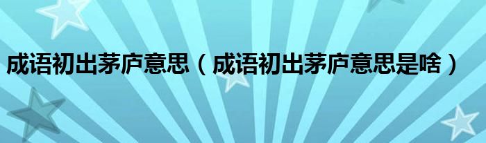 1、 “初出茅廬”這個成語的意思是:三國時期,諸葛亮剛剛離開他隱居的地方和劉備一起打天下,用來形容他第一次出來做一些事情。現在用來比喻剛離開家庭或剛到工作崗位,沒有經驗。