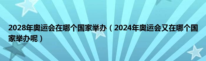 大家好,小帥來為大家解答以上問題。2028年奧運會在哪個國家舉辦,2024年奧運會又在哪個國家舉辦呢很多人還不知道,現在讓我們一起來看看吧!