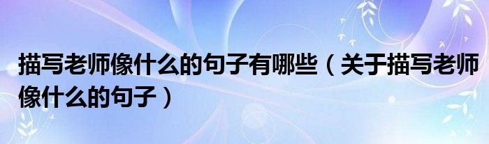 大家好,小帥來為大家解答以上問題。描寫老師像什么的句子有哪些,關于描寫老師像什么的句子很多人還不知道,現在讓我們一起來看看吧!