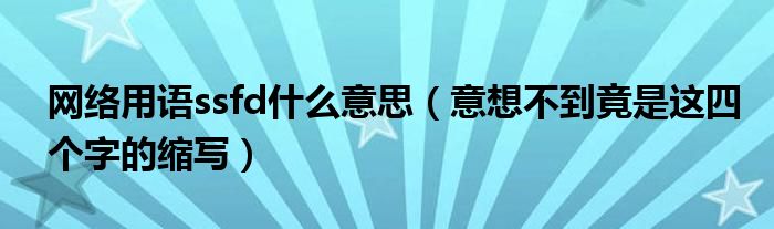 大家好,小帥來為大家解答以上問題。網(wǎng)絡(luò)用語ssfd什么意思,意想不到竟是這四個(gè)字的縮寫很多人還不知道,現(xiàn)在讓我們一起來看看吧!
