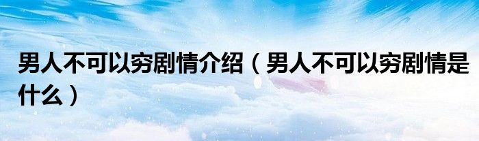 大家好,小帥來為大家解答以上問題。男人不可以窮劇情介紹,男人不可以窮劇情是什么很多人還不知道,現在讓我們一起來看看吧!