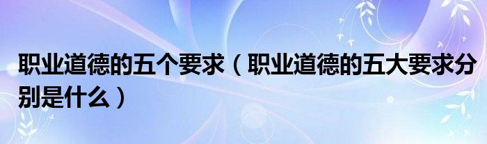 大家好,小帥來為大家解答以上問題。職業道德的五個要求,職業道德的五大要求分別是什么很多人還不知道,現在讓我們一起來看看吧!