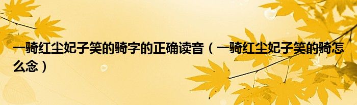 大家好,小安來為大家講解下。一騎紅塵妃子笑的騎字的正確讀音,一騎紅塵妃子笑的騎怎么念很多人還不知道,現在讓我們一起來看看吧!