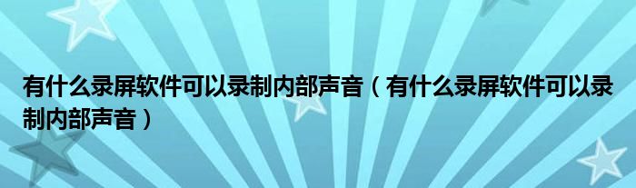 大家好,小安來為大家講解下。有什么錄屏軟件可以錄制內(nèi)部聲音,有什么錄屏軟件可以錄制內(nèi)部聲音很多人還不知道,現(xiàn)在讓我們一起來看看吧!