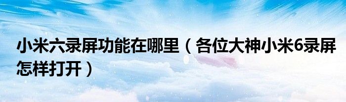 大家好,小安來為大家講解下。小米六錄屏功能在哪里,各位大神小米6錄屏怎樣打開很多人還不知道,現在讓我們一起來看看吧!