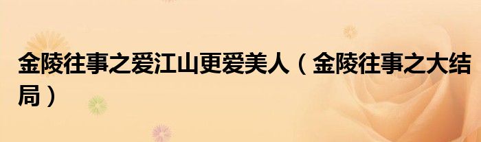 大家好,小安來為大家講解下。金陵往事之愛江山更愛美人,金陵往事之大結局很多人還不知道,現在讓我們一起來看看吧!