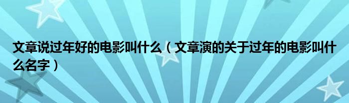 大家好,小安來為大家講解下。文章說過年好的電影叫什么,文章演的關于過年的電影叫什么名字很多人還不知道,現在讓我們一起來看看吧!