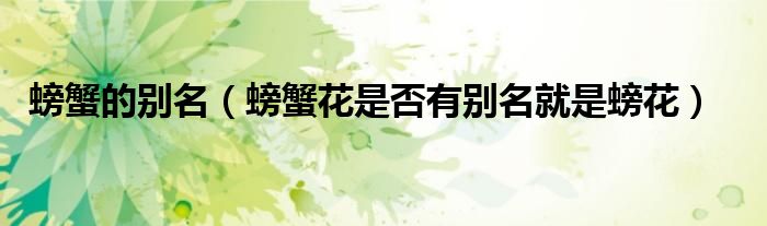 大家好,小安來為大家講解下。螃蟹的別名,螃蟹花是否有別名就是螃花很多人還不知道,現(xiàn)在讓我們一起來看看吧!