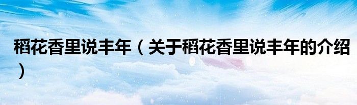 大家好,小安來為大家解答以上的問題。稻花香里說豐年很多人還不知道,現在讓我們一起來看看吧!