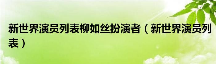 大家好,小安來為大家講解下。新世界演員列表柳如絲扮演者,新世界演員列表很多人還不知道,現(xiàn)在讓我們一起來看看吧!