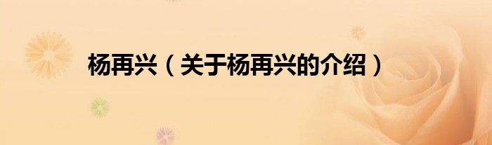 大家好,小安來為大家解答以上的問題。楊再興,關于楊再興的介紹很多人還不知道,現在讓我們一起來看看吧!