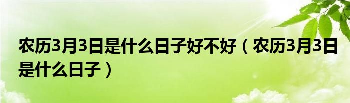 大家好,小安來為大家講解下。農(nóng)歷3月3日是什么日子好不好,農(nóng)歷3月3日是什么日子很多人還不知道,現(xiàn)在讓我們一起來看看吧!