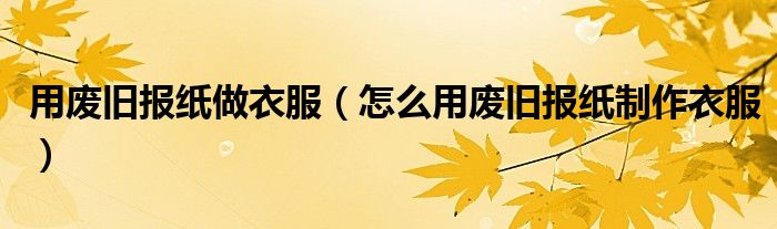 大家好,綜合小編來為大家講解下。用廢舊報紙做衣服,怎么用廢舊報紙制作衣服很多人還不知道,現在讓我們一起來看看吧!