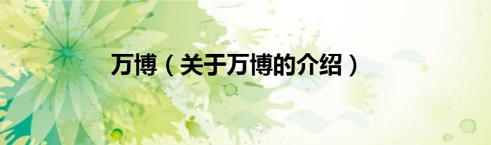 大家好,小安來為大家解答以上的問題。萬博,關于萬博的介紹很多人還不知道,現在讓我們一起來看看吧!