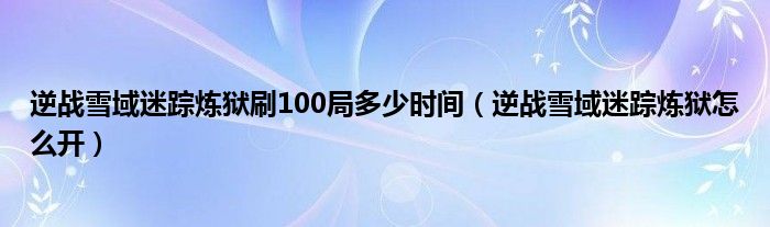 大家好,小安來為大家講解下。逆戰雪域迷蹤煉獄刷100局多少時間,逆戰雪域迷蹤煉獄怎么開很多人還不知道,現在讓我們一起來看看吧!