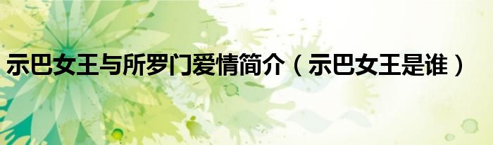 大家好,小安來為大家講解下。示巴女王與所羅門愛情簡介,示巴女王是誰很多人還不知道,現在讓我們一起來看看吧!