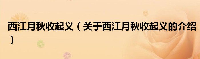 大家好,小安來為大家解答以上的問題。西江月秋收起義,關于西江月秋收起義的介紹很多人還不知道,現在讓我們一起來看看吧!