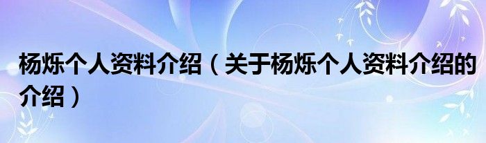 大家好,小安來為大家解答以上的問題。楊爍個人資料介紹,關于楊爍個人資料介紹的介紹很多人還不知道,現在讓我們一起來看看吧!