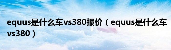 大家好,小安來為大家講解下。equus是什么車vs380報價,equus是什么車vs380很多人還不知道,現在讓我們一起來看看吧!