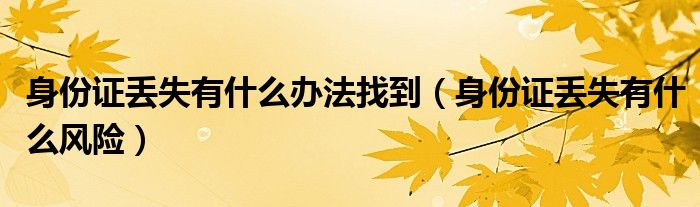 大家好,小安來為大家講解下。身份證丟失有什么辦法找到,身份證丟失有什么風險很多人還不知道,現在讓我們一起來看看吧!