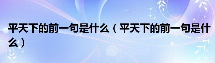大家好,小安來為大家講解下。平天下的前一句是什么,平天下的前一句是什么很多人還不知道,現在讓我們一起來看看吧!