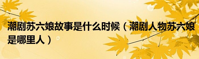 大家好,小安來為大家講解下。潮劇蘇六娘故事是什么時候,潮劇人物蘇六娘是哪里人很多人還不知道,現在讓我們一起來看看吧!