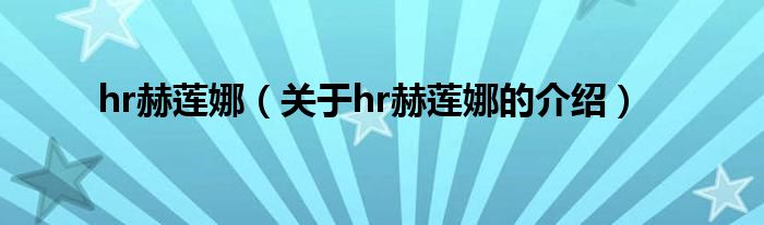 大家好,小安來為大家解答以上的問題。hr赫蓮娜,關于hr赫蓮娜的介紹很多人還不知道,現在讓我們一起來看看吧!