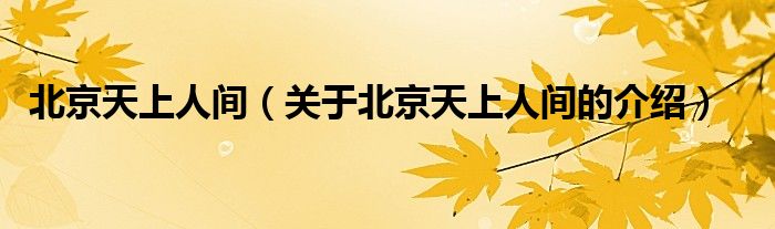 大家好,小安來為大家解答以上的問題。北京天上人間,關于北京天上人間的介紹很多人還不知道,現在讓我們一起來看看吧!