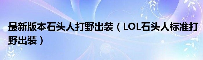 大家好,小安來為大家講解下。最新版本石頭人打野出裝,LOL石頭人標準打野出裝很多人還不知道,現在讓我們一起來看看吧!