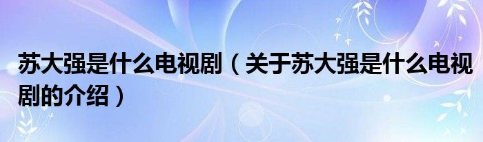 大家好,小安來(lái)為大家解答以上的問(wèn)題。蘇大強(qiáng)是什么電視劇,關(guān)于蘇大強(qiáng)是什么電視劇的介紹很多人還不知道,現(xiàn)在讓我們一起來(lái)看看吧!
