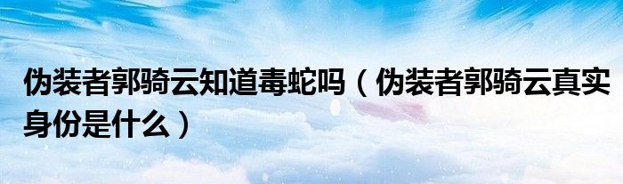 大家好,小安來為大家講解下。偽裝者郭騎云知道毒蛇嗎,偽裝者郭騎云真實身份是什么很多人還不知道,現在讓我們一起來看看吧!