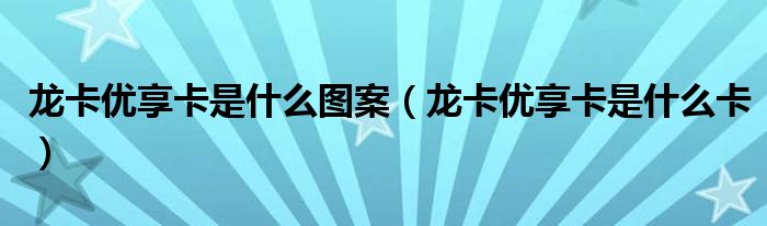 大家好,小安來為大家講解下。龍卡優享卡是什么圖案,龍卡優享卡是什么卡很多人還不知道,現在讓我們一起來看看吧!