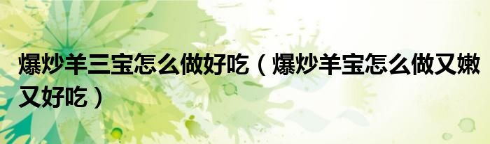 大家好,小安來為大家講解下。爆炒羊三寶怎么做好吃,爆炒羊寶怎么做又嫩又好吃很多人還不知道,現(xiàn)在讓我們一起來看看吧!