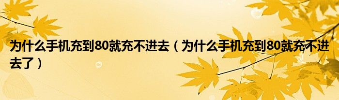 大家好,小安來為大家講解下。為什么手機充到80就充不進去,為什么手機充到80就充不進去了很多人還不知道,現在讓我們一起來看看吧!