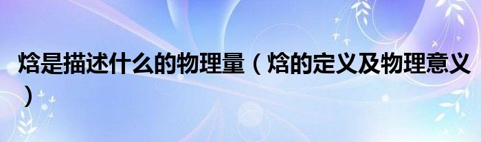 大家好,小安來為大家講解下。焓是描述什么的物理量,焓的定義及物理意義很多人還不知道,現(xiàn)在讓我們一起來看看吧!