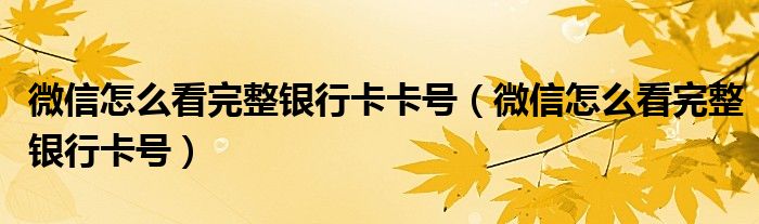 大家好,小安來為大家講解下。微信怎么看完整銀行卡卡號(hào),微信怎么看完整銀行卡號(hào)很多人還不知道,現(xiàn)在讓我們一起來看看吧!