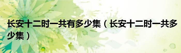 大家好,小安來為大家講解下。長(zhǎng)安十二時(shí)一共有多少集,長(zhǎng)安十二時(shí)一共多少集很多人還不知道,現(xiàn)在讓我們一起來看看吧!