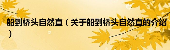 大家好,小安來為大家解答以上的問題。船到橋頭自然直,關于船到橋頭自然直的介紹很多人還不知道,現在讓我們一起來看看吧!