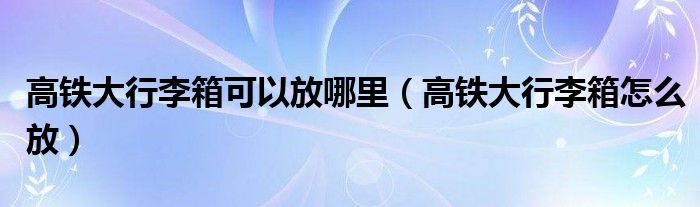 大家好,小安來為大家講解下。高鐵大行李箱可以放哪里,高鐵大行李箱怎么放很多人還不知道,現在讓我們一起來看看吧!