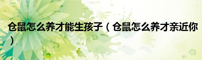 大家好,小安來為大家講解下。倉鼠怎么養才能生孩子,倉鼠怎么養才親近你很多人還不知道,現在讓我們一起來看看吧!