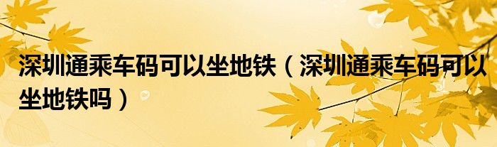 大家好,小安來為大家講解下。深圳通乘車碼可以坐地鐵,深圳通乘車碼可以坐地鐵嗎很多人還不知道,現(xiàn)在讓我們一起來看看吧!