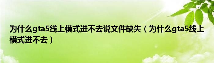 大家好,小安來為大家講解下。為什么gta5線上模式進不去說文件缺失,為什么gta5線上模式進不去很多人還不知道,現在讓我們一起來看看吧!