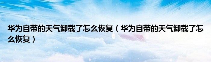大家好,小安來為大家講解下。華為自帶的天氣卸載了怎么恢復,華為自帶的天氣卸載了怎么恢復很多人還不知道,現(xiàn)在讓我們一起來看看吧!