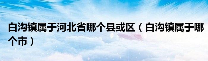 大家好,小安來為大家講解下。白溝鎮屬于河北省哪個縣或區,白溝鎮屬于哪個市很多人還不知道,現在讓我們一起來看看吧!
