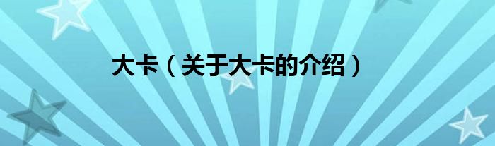 大家好,小安來為大家解答以上的問題。大卡,關于大卡的介紹很多人還不知道,現在讓我們一起來看看吧!