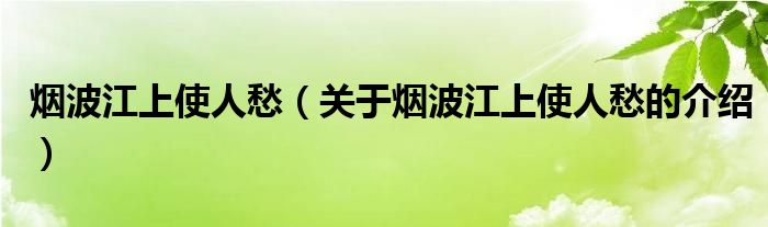 大家好,小安來為大家解答以上的問題。煙波江上使人愁,關(guān)于煙波江上使人愁的介紹很多人還不知道,現(xiàn)在讓我們一起來看看吧!