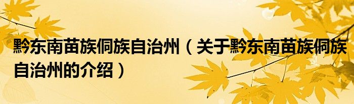 1、黔東南苗族侗族自治州,位于貴州省東南部。