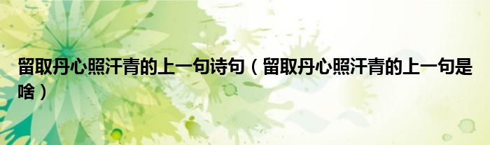 大家好,小安來為大家講解下。留取丹心照汗青的上一句詩句,留取丹心照汗青的上一句是啥很多人還不知道,現在讓我們一起來看看吧!