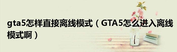 大家好,小安來為大家講解下。gta5怎樣直接離線模式,GTA5怎么進入離線模式啊很多人還不知道,現在讓我們一起來看看吧!