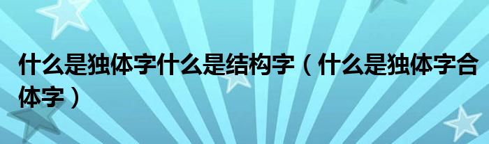 大家好,小安來為大家講解下。什么是獨體字什么是結構字,什么是獨體字合體字很多人還不知道,現在讓我們一起來看看吧!